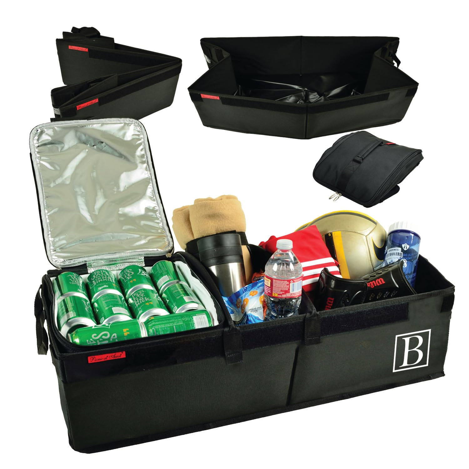 LIFETIME WARRANTY from PICNIC at ASCOT USA - Designers and Manufacturers for over 25 years of a Wide Range of High Quality Picnic Baskets, Coolers, Wine Carriers & Life Style Products HEAVY DUTY trunk organizer for cars, SUV's and mini vans. 70 lbs. carrying capacity. INCLUDES A REMOVEABLE LEAK-PROO