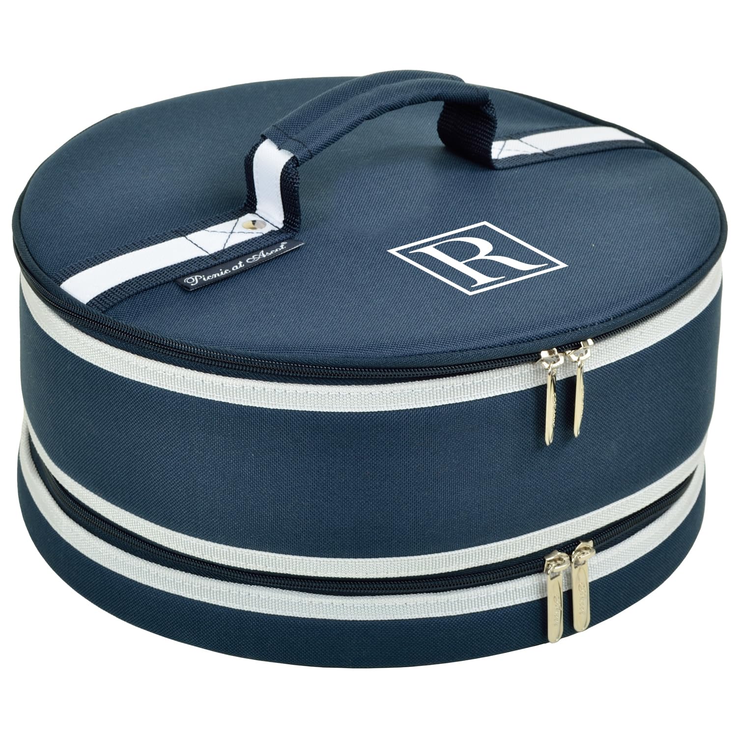 MONOGRAMMED CASSEROLE CARRIER. Lifetime Warranty from PICNIC at ASCOT USA - Designers and Manufacturers for over 30 years of a Wide Range of High Quality Picnic Baskets, Coolers, Wine Carriers & Life Style Products STYLISH HIGH QUALITY two level insulated casserole dish carrier to keep food hot or c