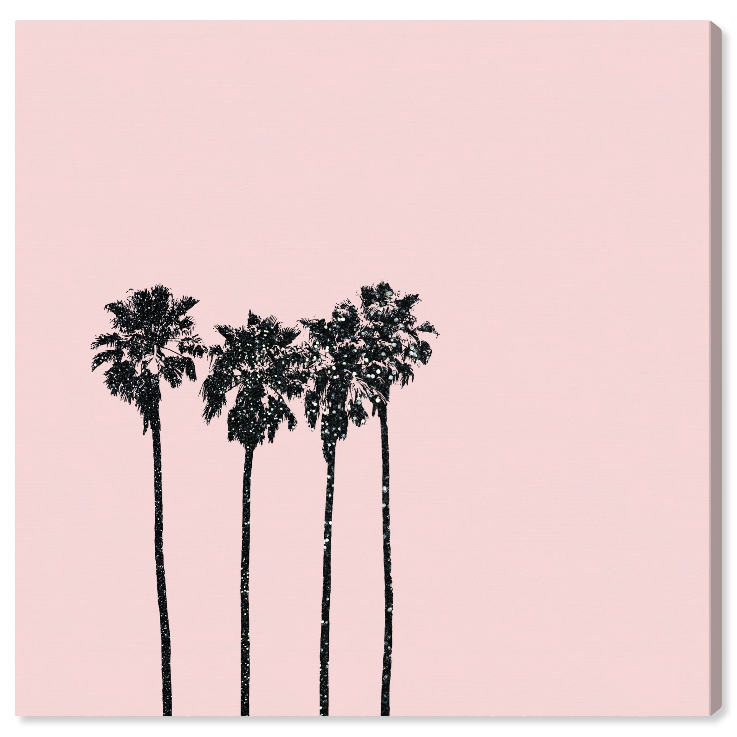 Wynwood Studio Floral and Botanical Modern Canvas Art - Glitter Palm Trees, Wall Art for Living Room, Bedroom, and Bathroom, 20 in x 20 in, Pink and