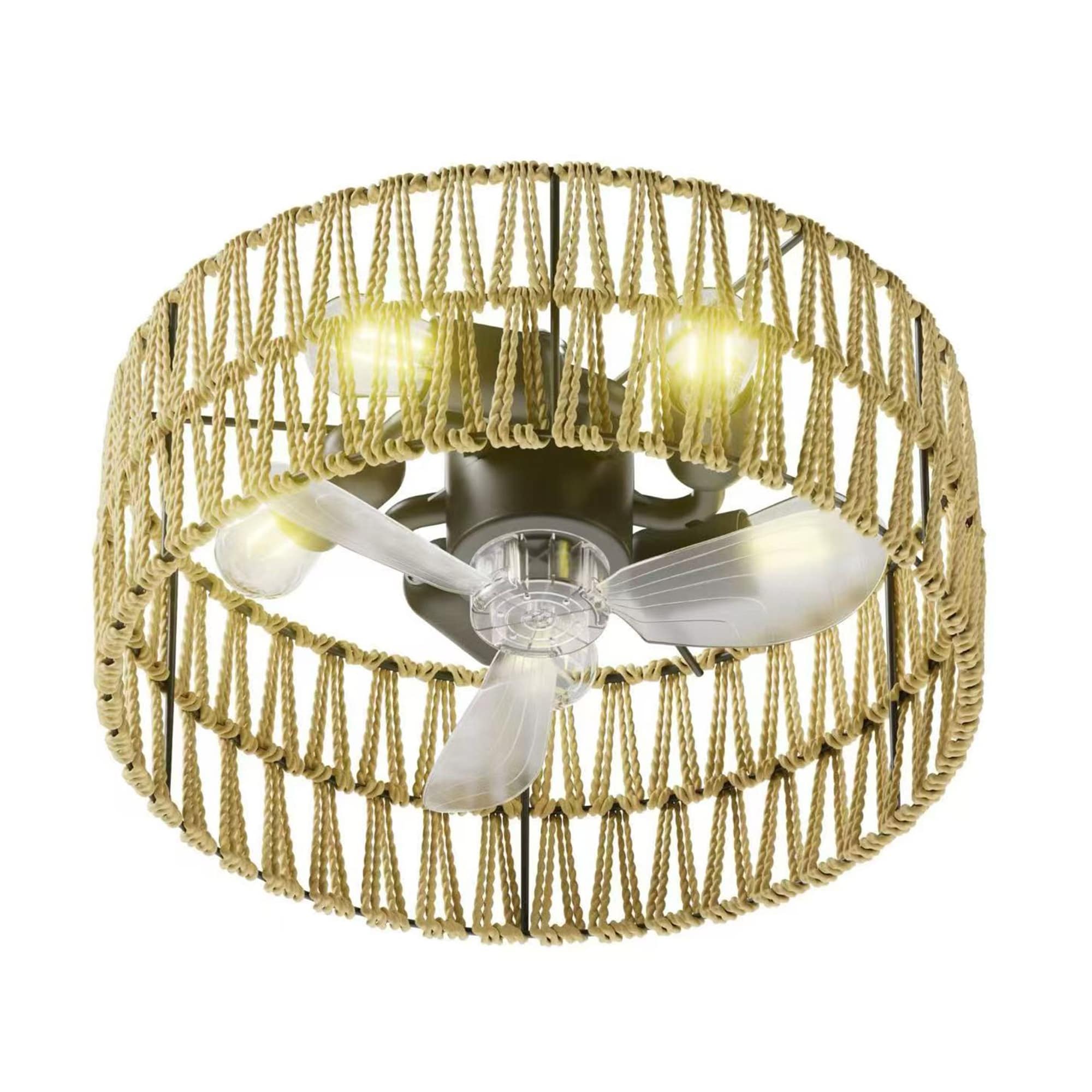 16.6"Square Fabric Flush Mount Ceiling Fan,Reversible Motor,DC Remote Control,7 PCS PC Blades,6 Speed Ceiling Fan,Timing