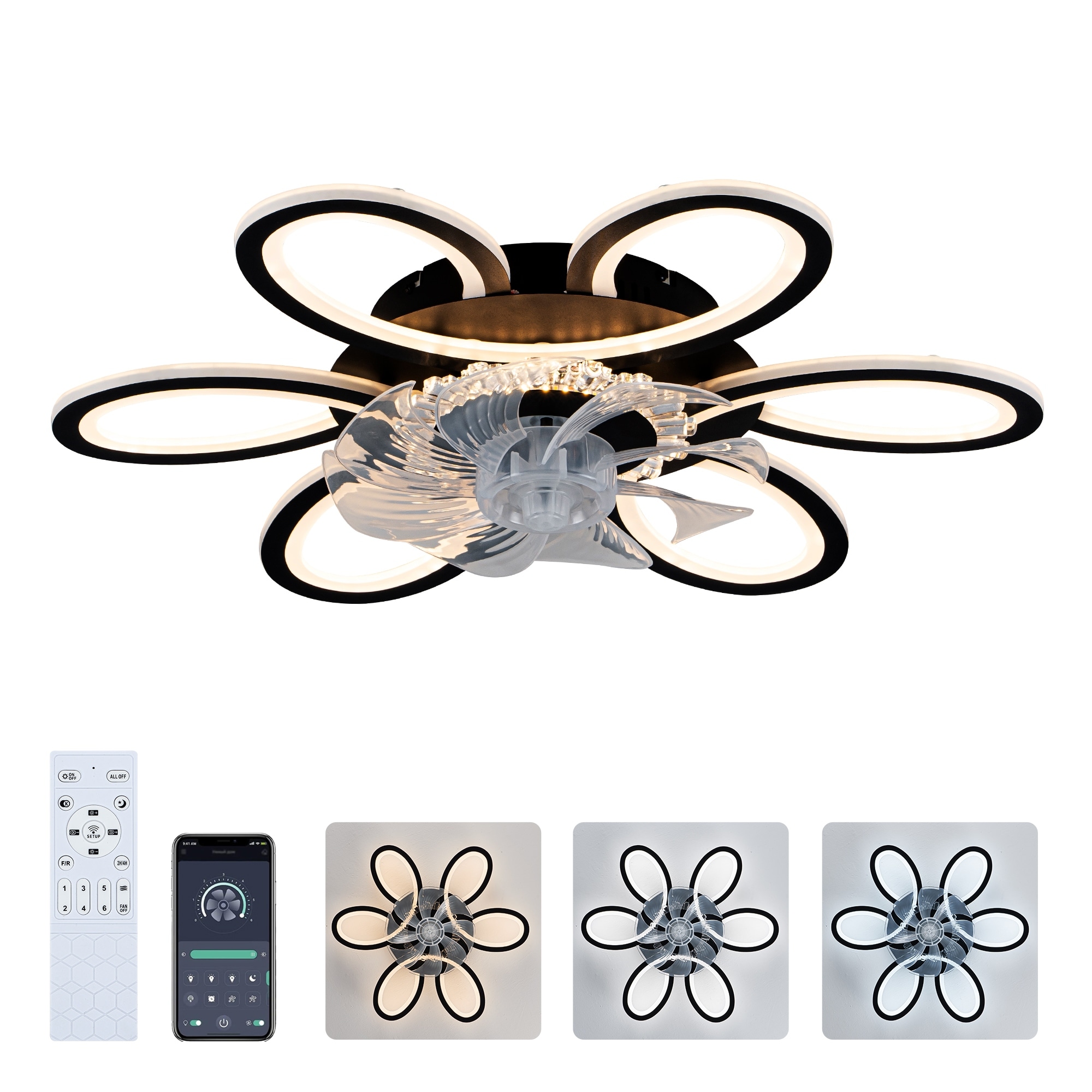 5 PCS Blades Ceiling Fan with Lights Remote Control.29" Black, 6 Speeds 3 Light Color Low Profile Flush Mount Ceiling Fan