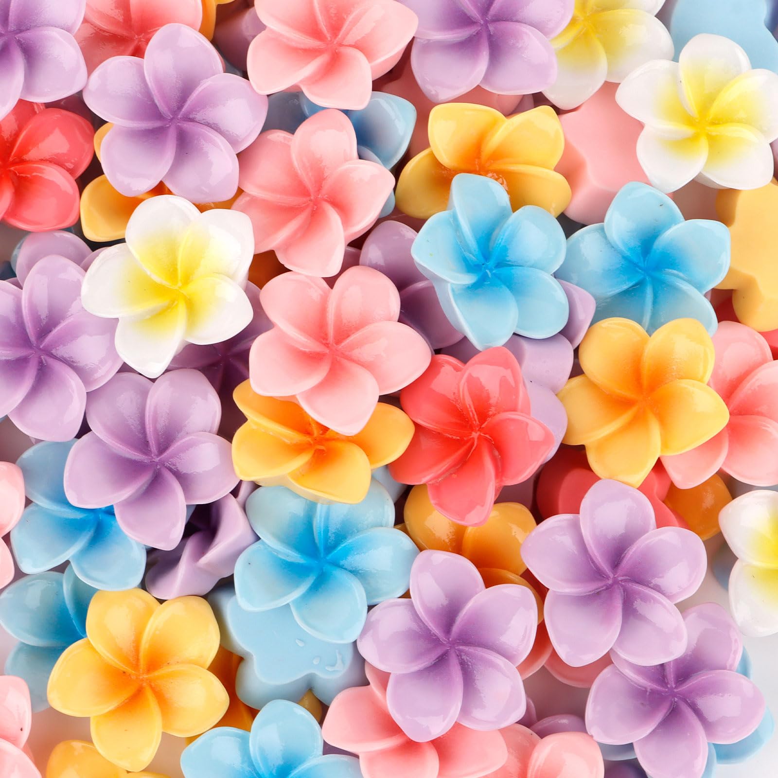 YISSION 100 Pcs Vibrant Flatback Resin Flower Charms for DIY Crafts, Multi-Use Hawaiian Plumerias Flower Cabochons Charms for Jewelry Making, Slime