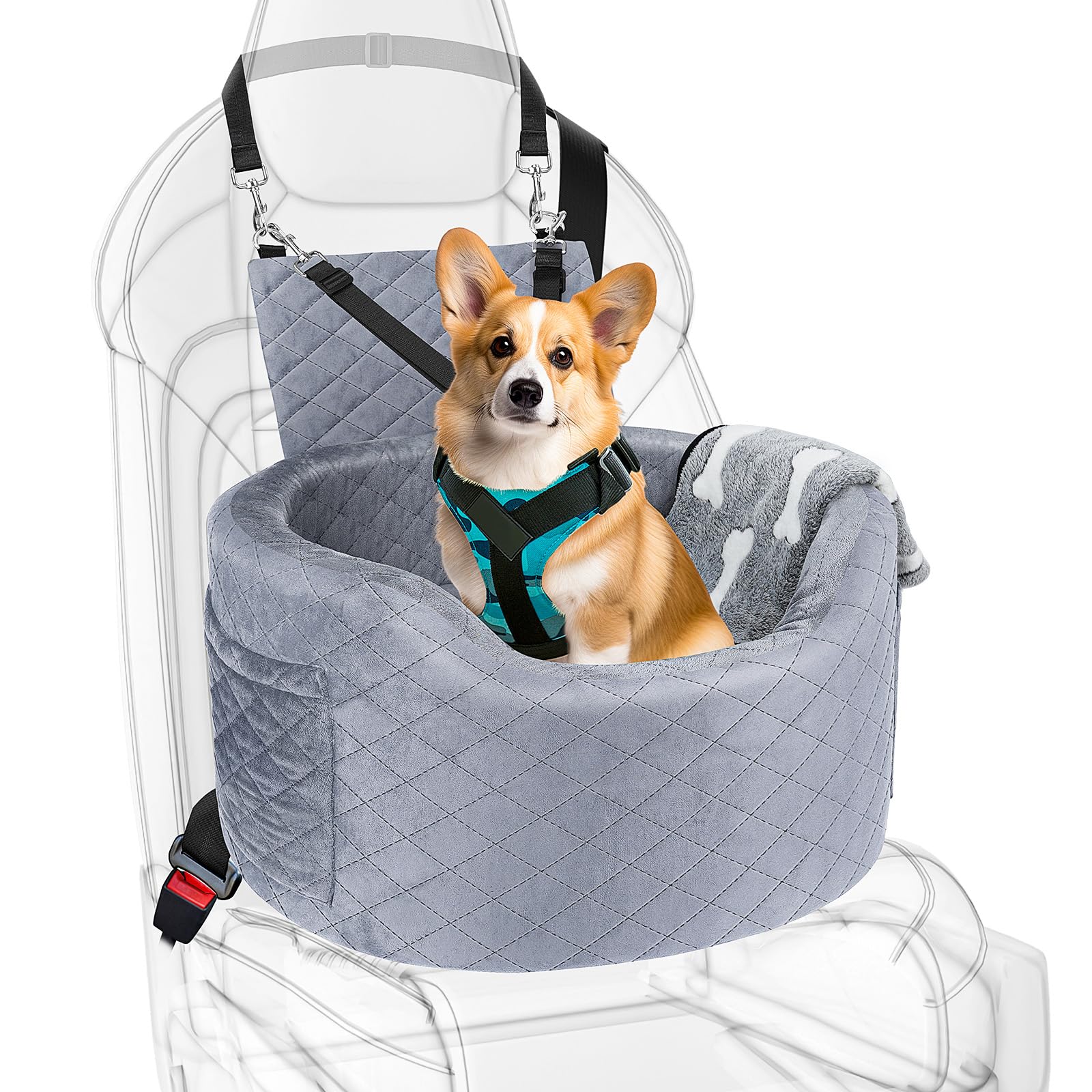 Dog Booster Car Seats for Small Medium Dogs, Fits Dogs Under 19", 28D High-Density Memory Foam with Waterproof Cover, Pet Travel Bed with Storage