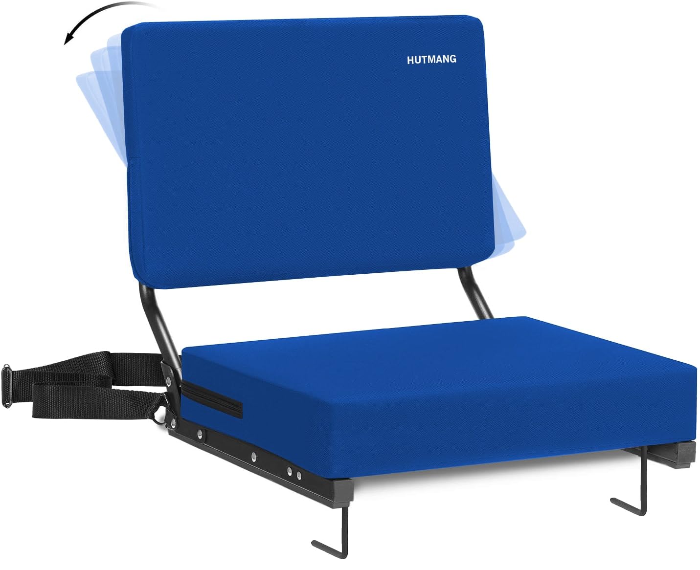 HUTMANG Stadium Chairs for Adults,Bleacher Chairs with Back Support,Portable Stadium Seats with Swivel Padded Cushion,Folding Comfort Stadium Seat with Shoulder Strap,Perfect for Sports Events(Blue)