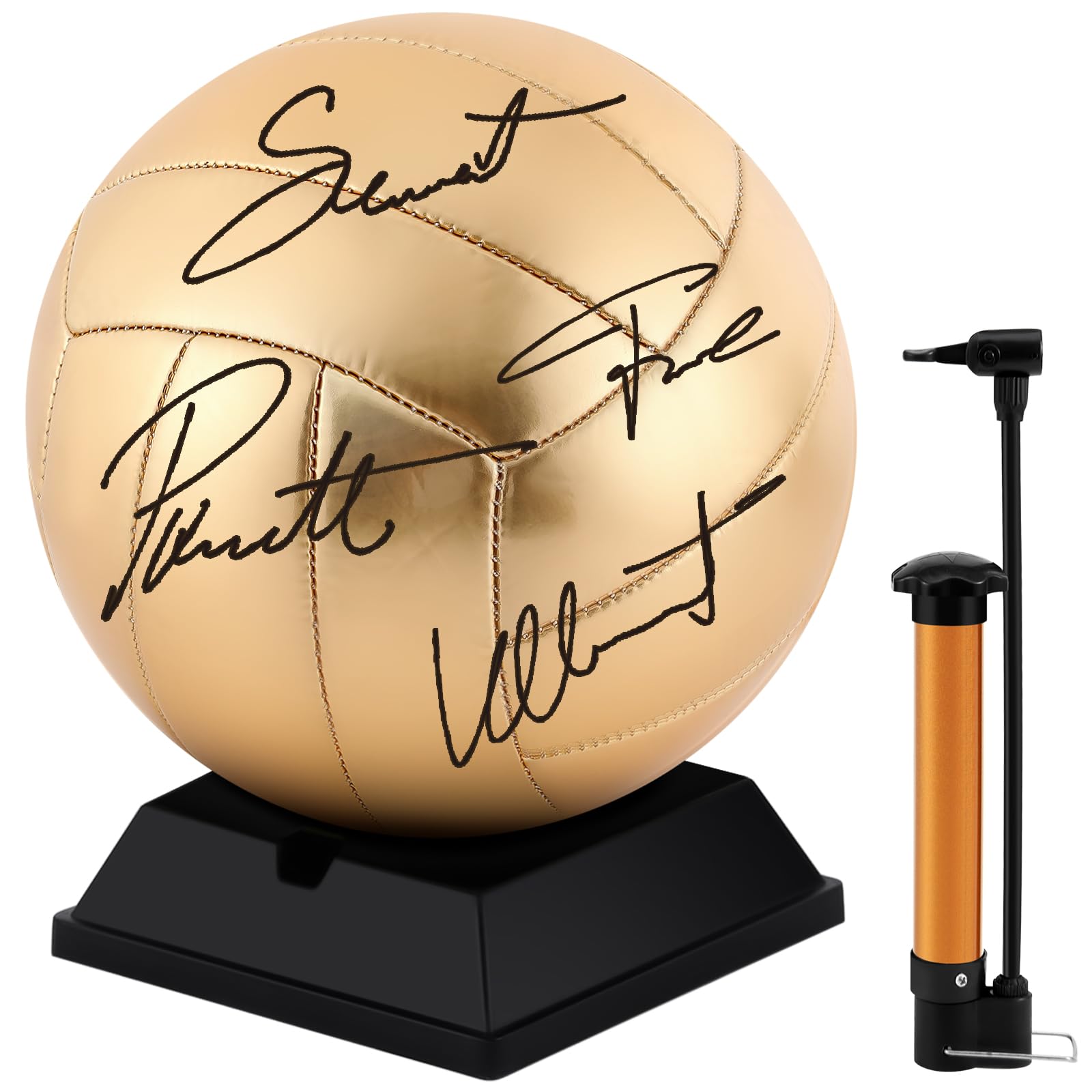 Hiboom Gold Autograph Volleyball with Display Stand Air Pump Size 5 Volleyball for Trophies High School College Anniversary Coaching Gift Awards Championship Party