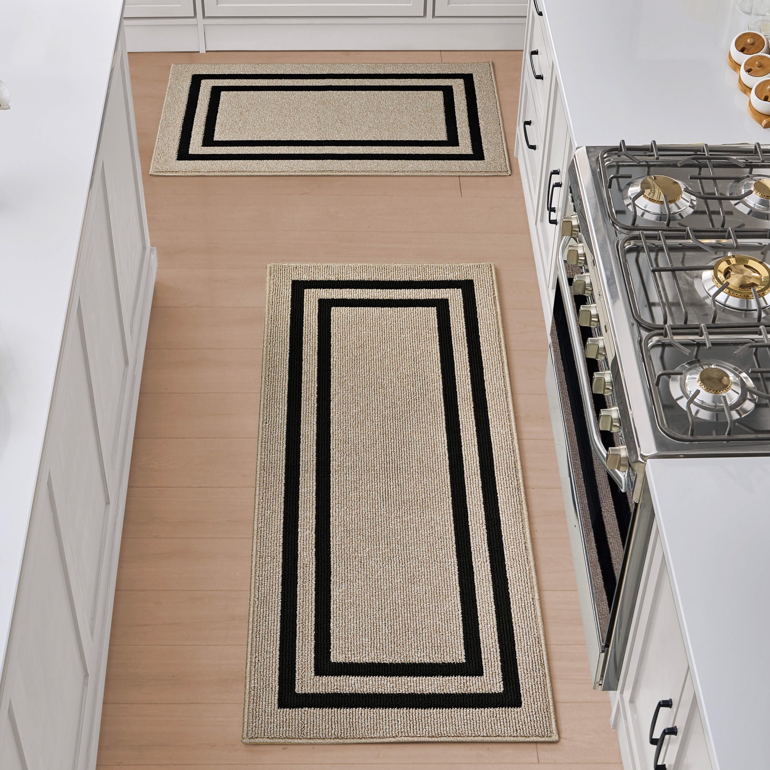 Creative Home Ideas - Tufted Runner 2 Piece Set - Double Line Border Rug - Washable Rug - Accent Carpet for Entryway & Hallway - Measures 26 x 45 & 26