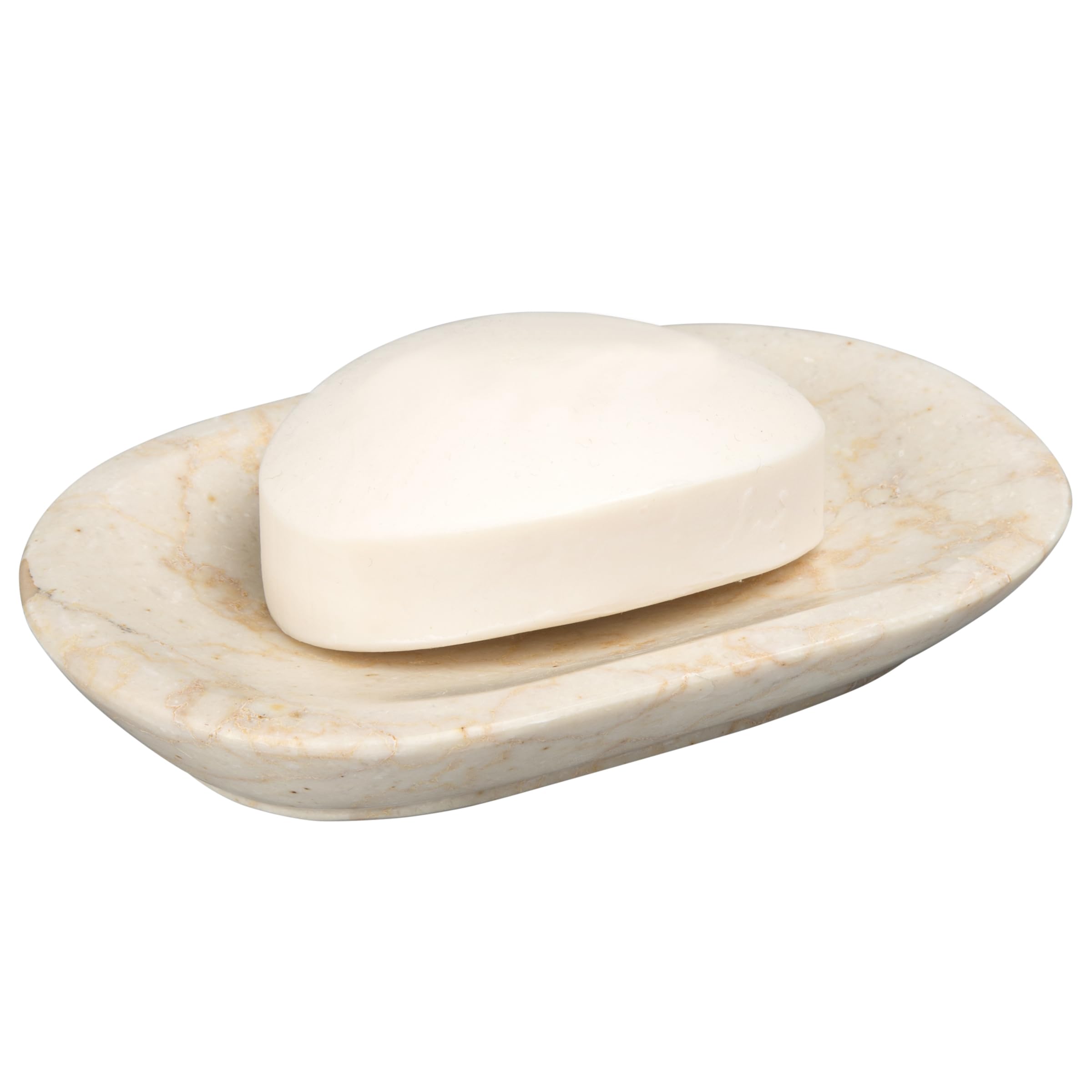 100% Marble Dimensions: 3-3/4" x 5-3/4" x 7/8" H NATURE MATERIAL: Made of 100% natural marble stone which provides premium quality and durability. Varies in pattern and color, giving it a beautifully organic style. DURABLE AND HEAVY WEIGHTED: Durable, heavy weight natural marble keeps bath accessori