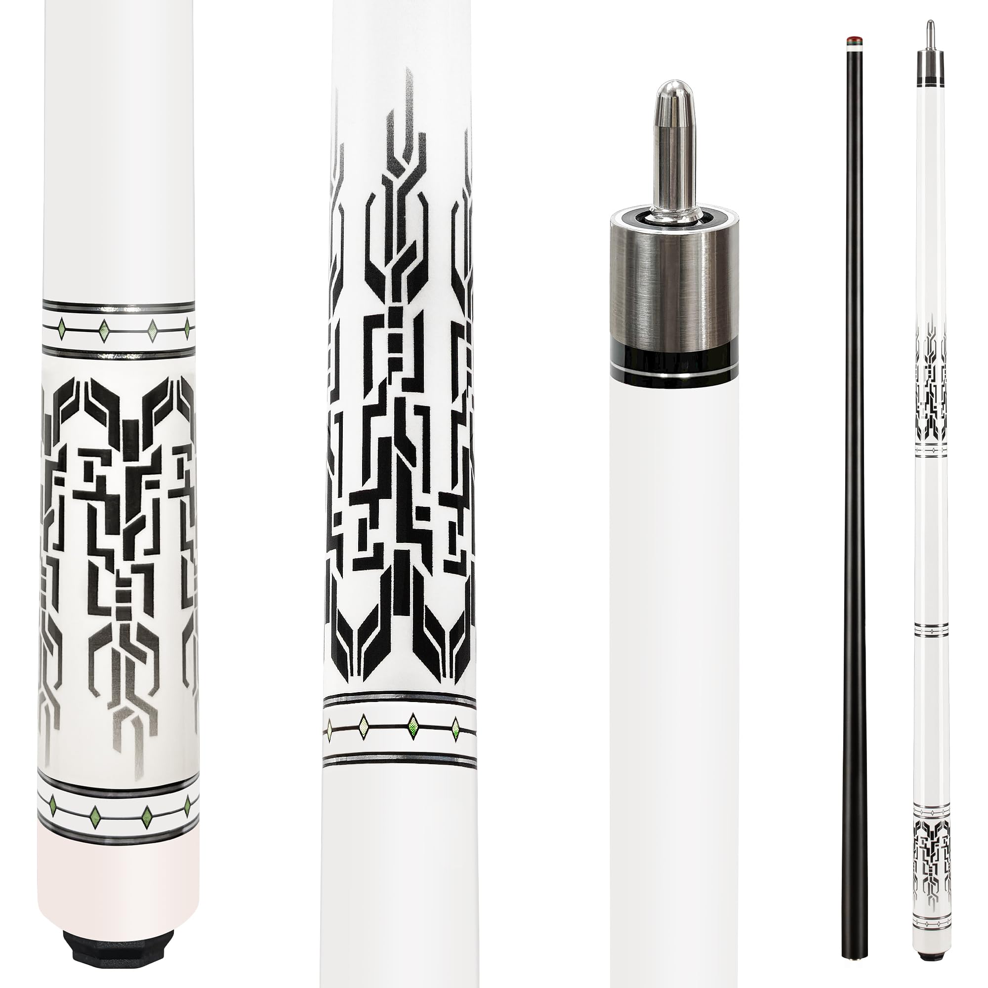🎱Material: This cue is crafted from Canadian Maple Wood. Known for its straightness, strength, and warp resistance, this wood ensures reliable performance and long - term durability. 🎱Design: 2-piece structure enables dual functionality. 57inch/147cm, 13.5mm tip pool cue stick for improve hitt
