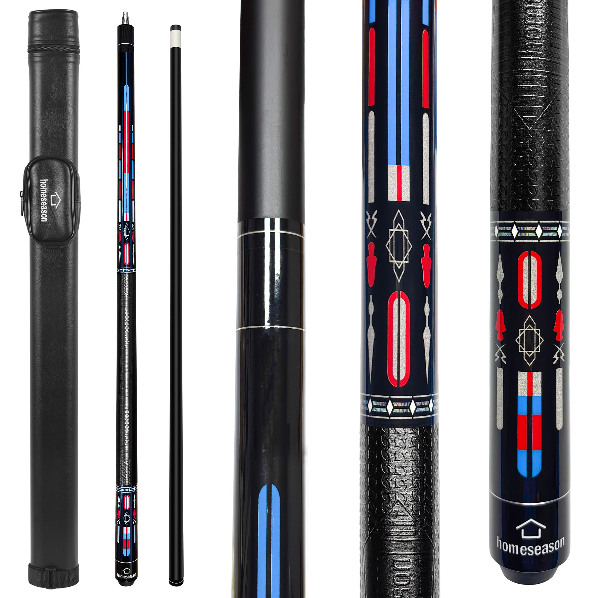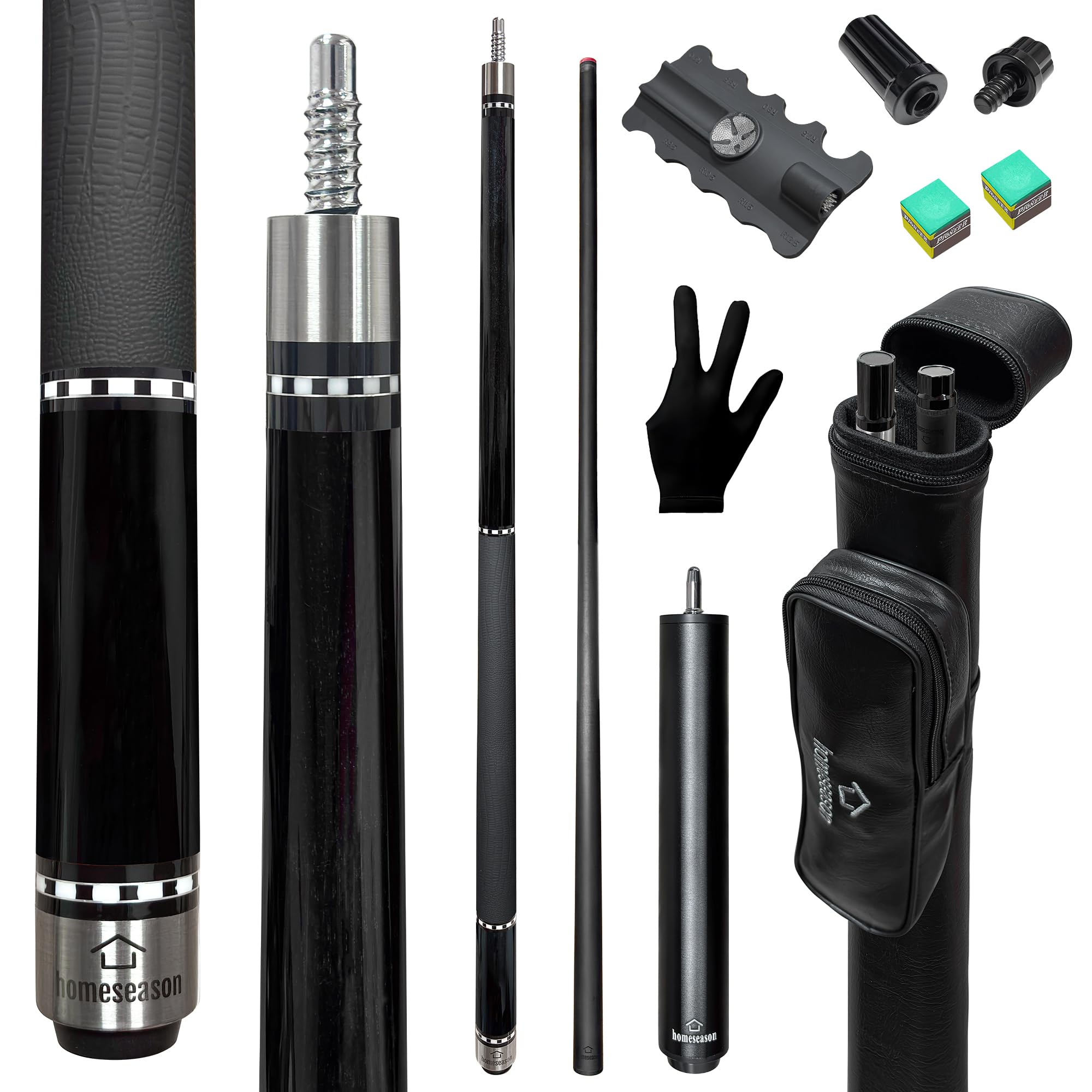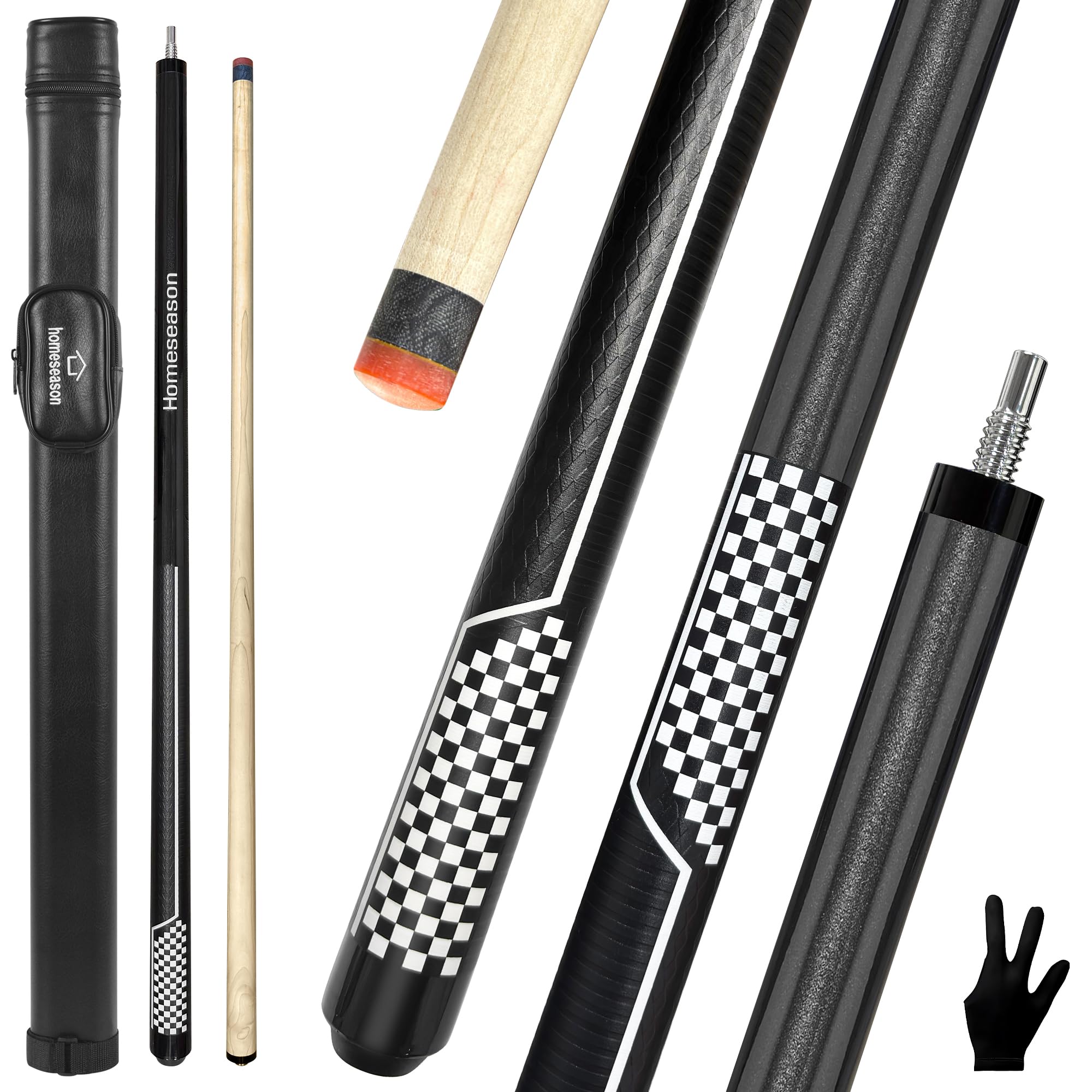 HomeSeason 58inch Carbon Fiber Pool Cue Stick with Screw-in Extension and Leather Case, 18oz Low Deflection Professional Cue Stick for Billiards, 13mm