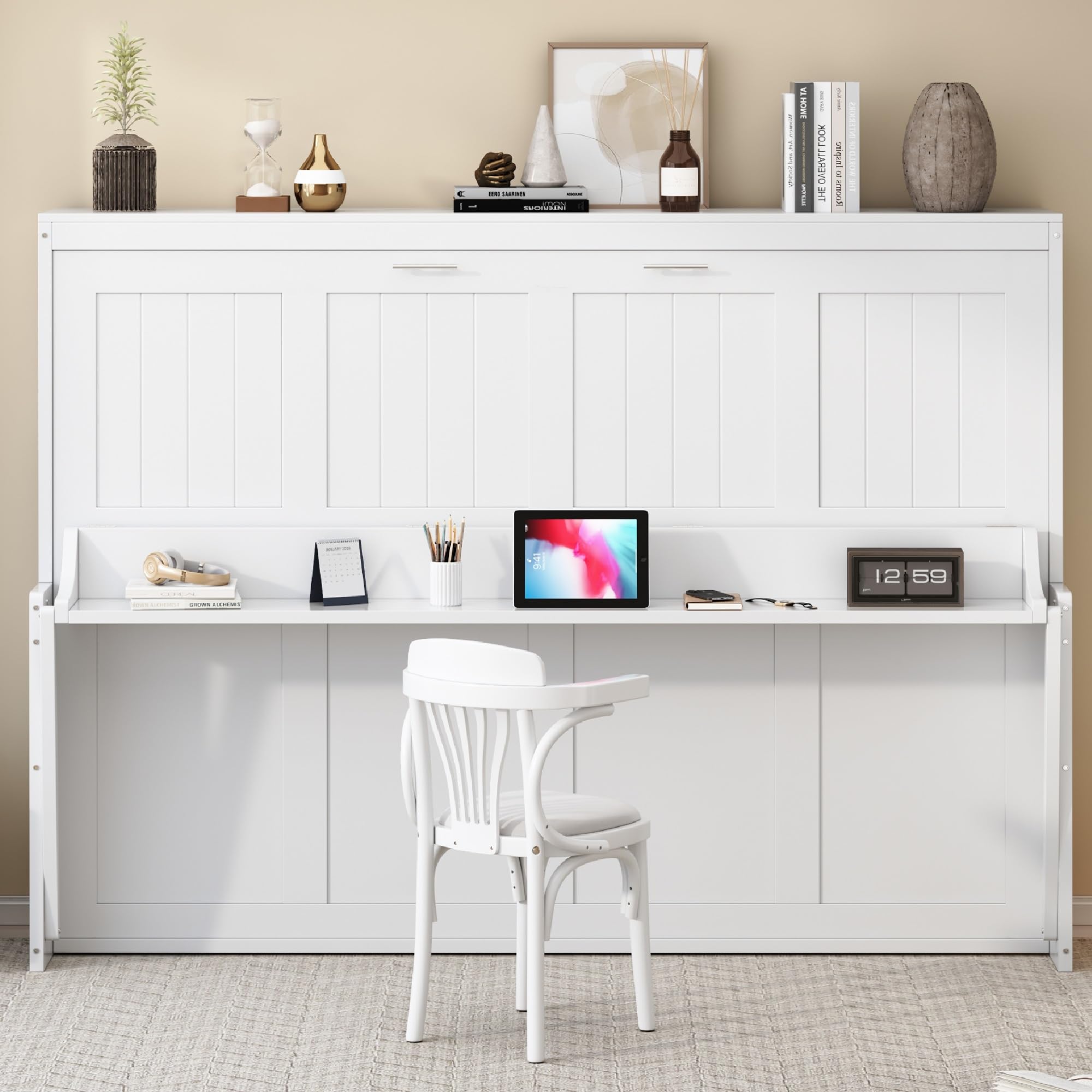 【Desk or Bed】The unique design of the Murphy bed allows it effortlessly switch from desk mode to bed mode, making the most of every inch of your space, adding more flexibility to your living space. Ideal for guest/study room, home office, or home gym. 【Smooth Folding Mechanism】This Full/Quee