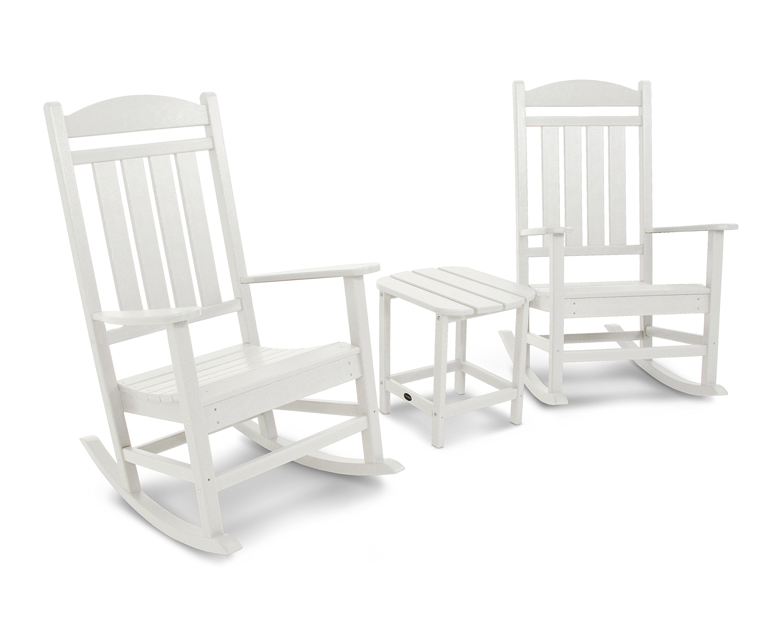 Set includes two R100 Presidential Rockers and one SBT18 South Beach 18" Side Table Constructed of genuine POLYWOOD lumber, a proprietary blend of plastics which includes recycled milk jugs and detergent bottles Solid, heavy-duty construction withstands nature's elements POLYWOOD lumber requires no