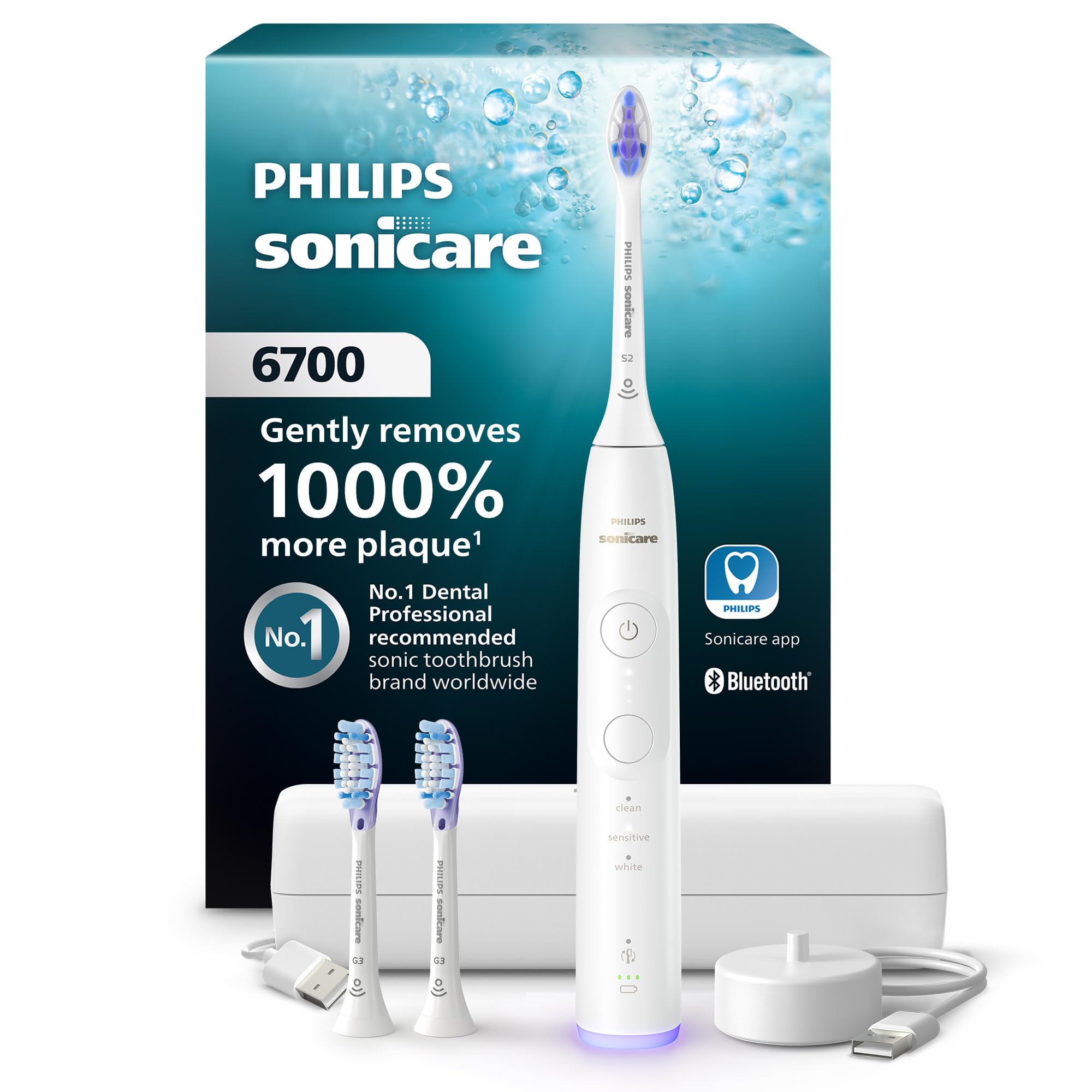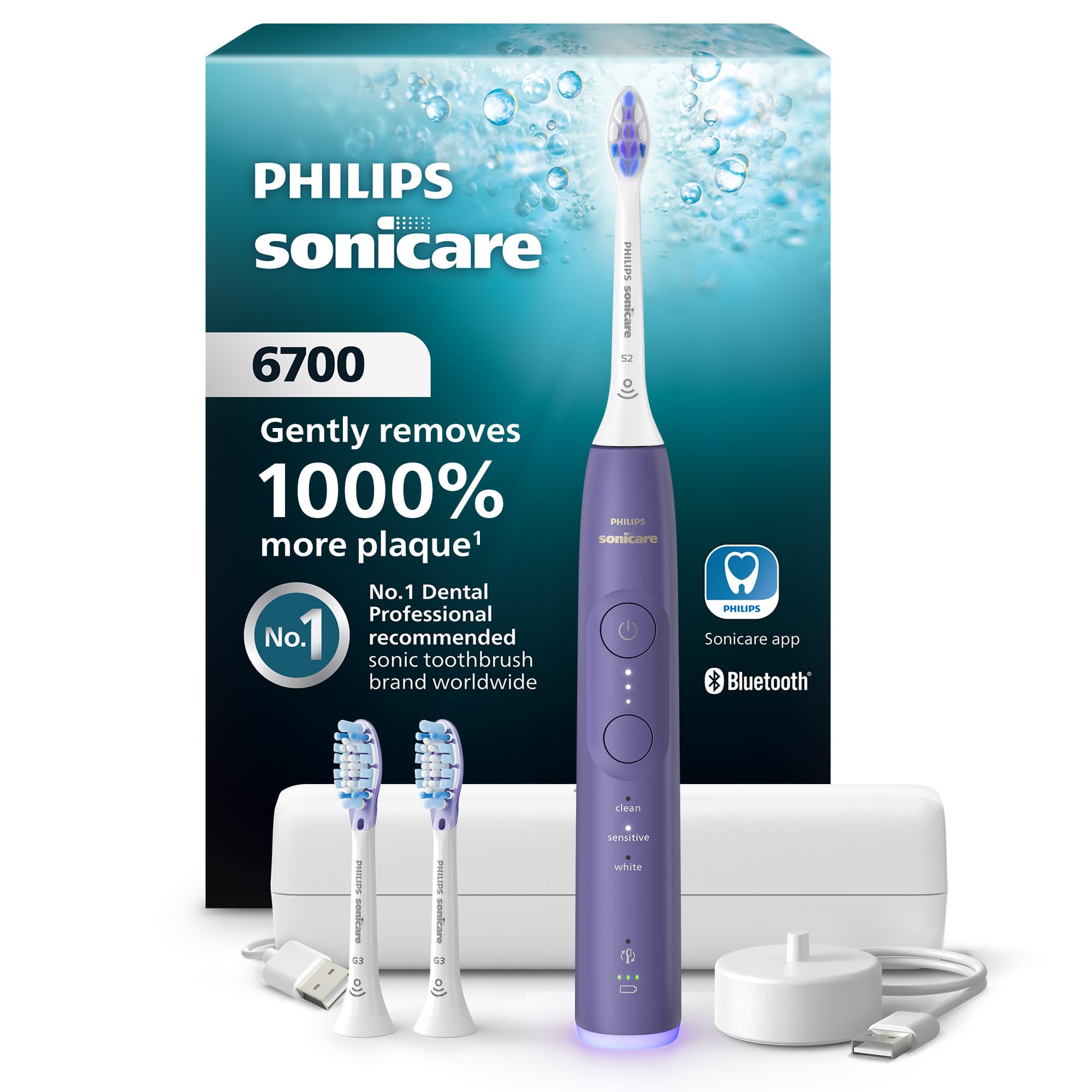 S2 Sensitive brush head with more than 3,000 densely packed, long, thin & ultra-soft bristles that keep every brush stroke kind; it helps you remove 1000% more plaque than a manual toothbrush¹ Next-Generation Sonicare Technology: a gentle & effective clean − even in hard-to-reach areas; Sonicare