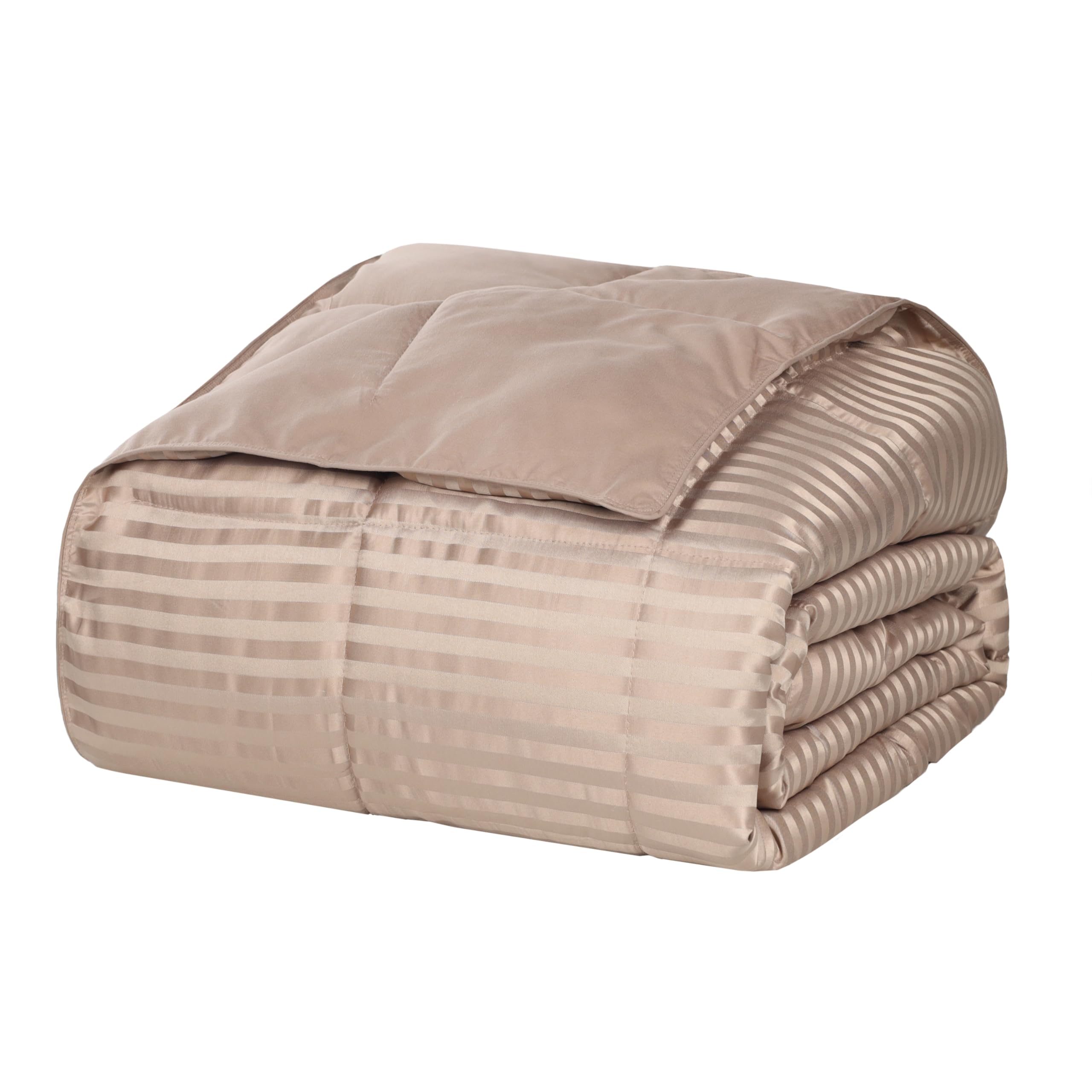 Superior Reversible Down Alternative Polyfill Blanket with Striped Microfiber Shell -Twin/Twin XL, Taupe