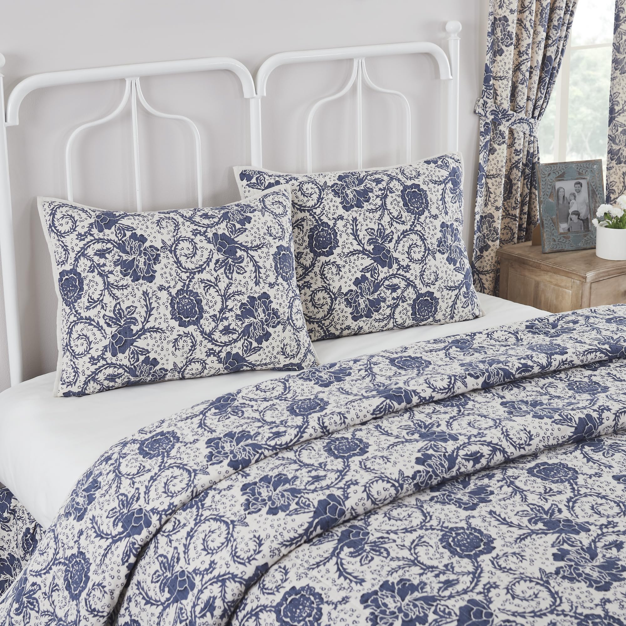 VHC Brands Dorset, Farmhouse Quilted Bed Sham, Standard, Floral, Navy, 21x27